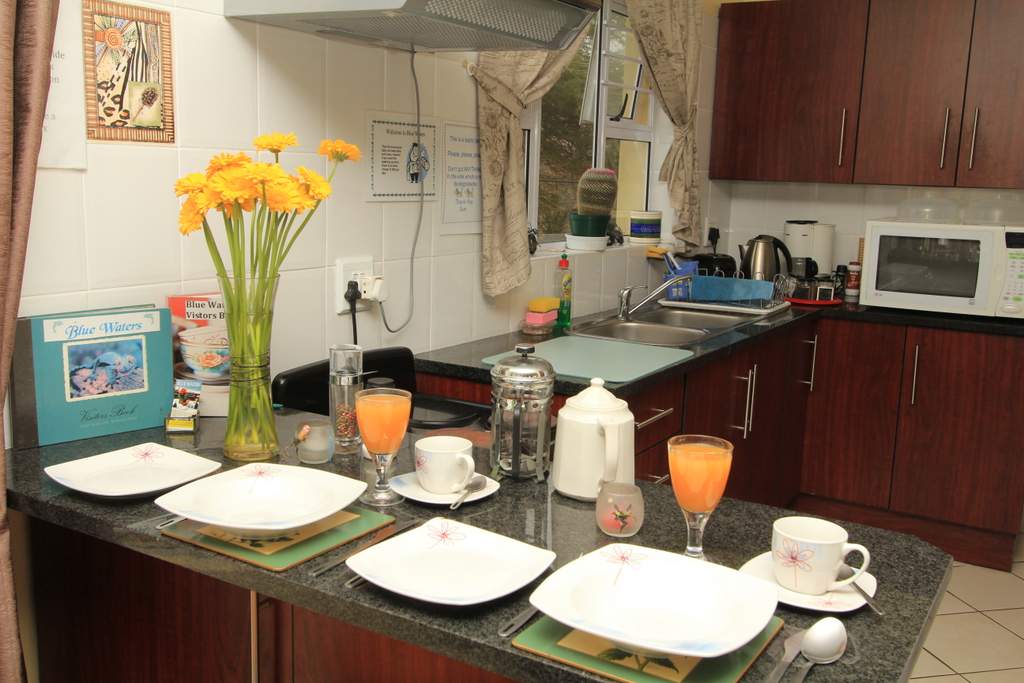 'Blue Waters' is a stunning new flat with two en suite bedrooms one with Jacuzzi, kitchen, lounge and large balcony with braai with stunning views of the beach this accommodation is perfect for family self-catering holiday. The flat is fully equipped and serviced daily. I am happy to serve breakfast on request.